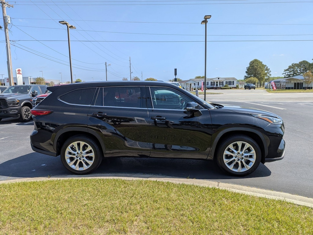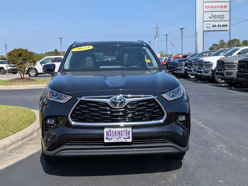Midnight Black Metallic 2023 Toyota Highlander Priced below KBB Fair Purchase Price! Limited FWD 8-Speed Automatic 2.4L I4 PDI Turbocharged DOHC 16V LEV3-SULEV30 265hp ABS brakes, Active Cruise Control, Alloy wheels, Electronic Stability Control, Front dual zone A/C, Heated door mirrors, Heated front seats, Heated/Ventilated Front Bucket Seats, Illuminated entry, Leather Seat Trim, Low tire pressure warning, Navigation System, Power Liftgate, Power moonroof, Remote keyless entry, Traction control. CARFAX One-Owner.
